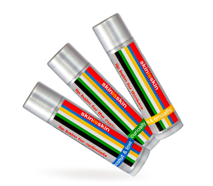 Get these great products before they are gone! Includes a curation of 5 assorted flavors of our Skin is Skin Lip Balm in flavors: coconut & love, mint & curiosity, anise & empathy, natural & open, raspberry & kisses, almond & soul *Not all bundles will include all flavors